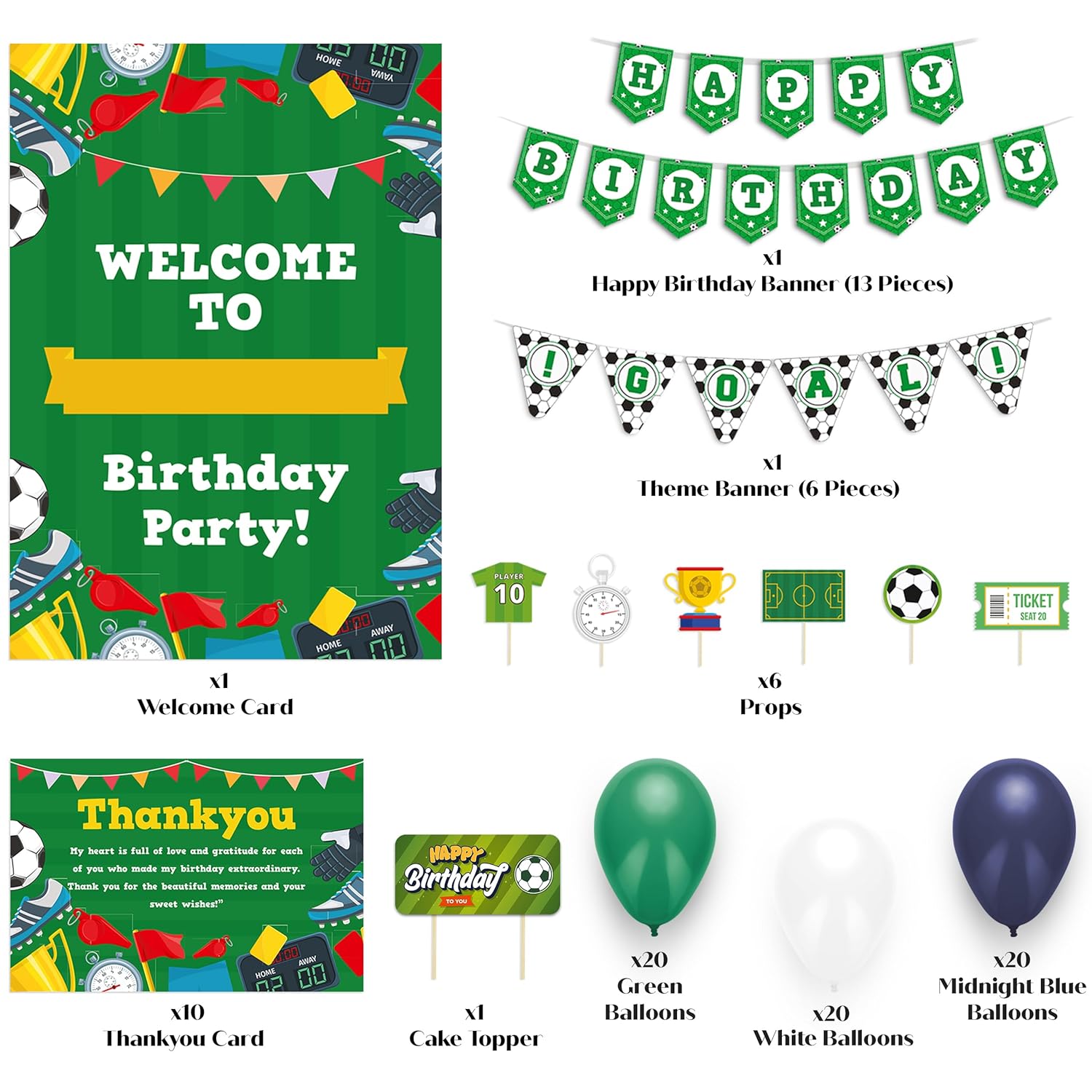 Just Party Football Theme Party Decoration - 99 pcs Happy Birthday Decoration Kit for Kids
