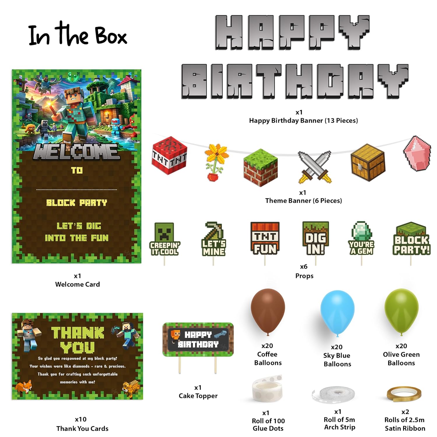 Everything you need to create a stunning mining and block-themed birthday setup is included – no hassle, no extra effort. Simply set up, and let the mining adventure begin!