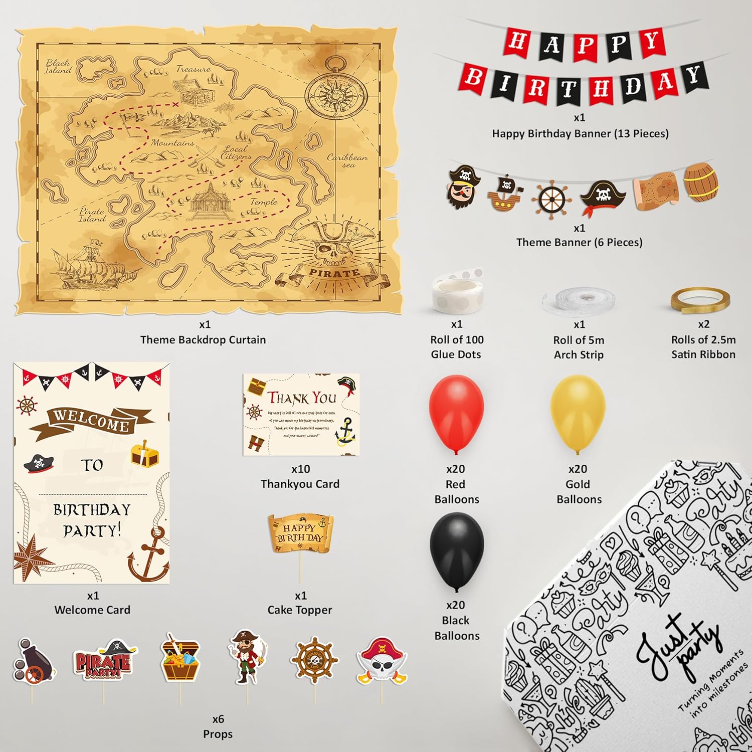 Just Party Pirate Theme Party Decoration - 100 pcs Happy Birthday Decoration Kit for Kids